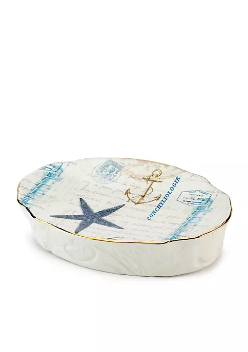 The Antigua accessory collection features a shell motif decal in soft tones of natural and blues with debossed shells on an ivory base color. Sure to bring the seaside beauty and feel of relaxation into your home. Seamlessly coordinates with the Avanti Antigua towel collection and shower curtain.