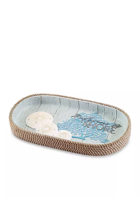 The Avanti Beachcomber Tray is crafted in resin for incredible detail. The coral and sand dollar motif is set off beautifully on an aqua clapboard background, finished with rope detail.