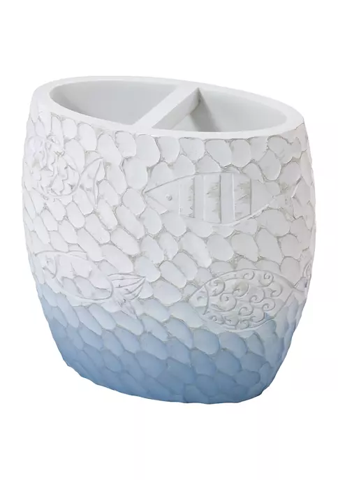 Add a touch of seaside luxury to your sanctuary with the Avanti Blue Fin Bay Toothbrush Holder. The toothbrush holder features primitive-looking fish with an all around ombre blue/white finish that finishes off your bathroom space beautifully.