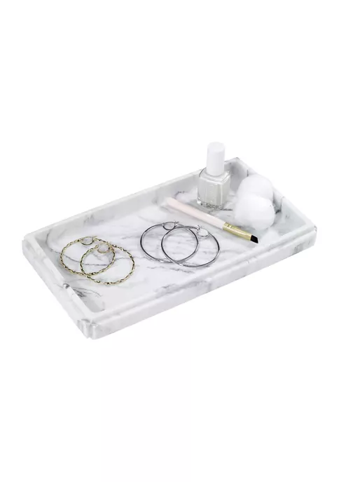 The Avanti Catania Tray features a grey and white marble look in a contemporary, geometric shape. Perfect for the bathroom, kitchen, office or any room in the house-great combination of form and function. Made of durable resin for long-lasting use, 10″ W x 5.5″ D x 1″ H.