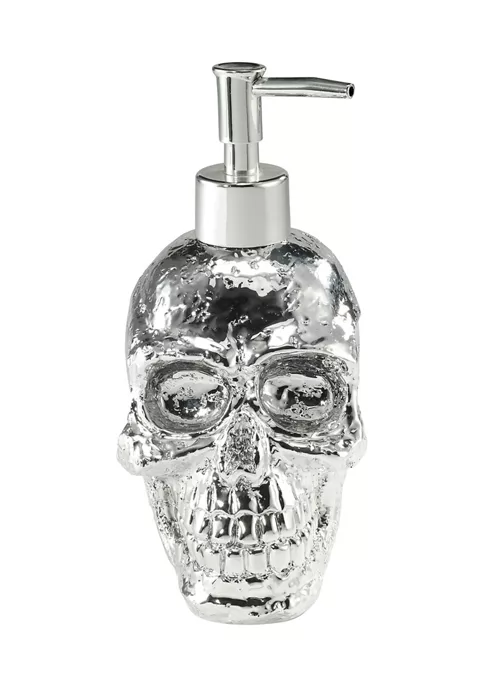 The Avanti Electroplated Skull Decorative Lotion/ Soap/ Sanitizer Dispenser is a figural skull with a shiny, textured electroplated finish and shiny silver pump. Made of durable, hand-painted resin. Brings a bit of Halloween spirit to any bathroom or kitchen.