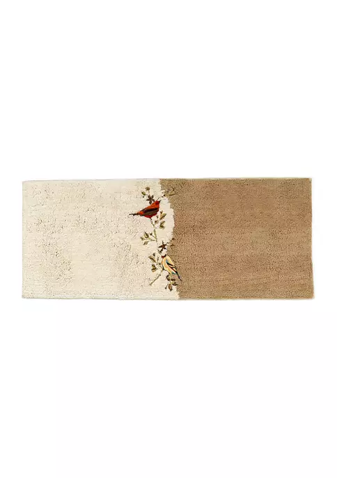 The Avanti Gilded Birds Rug is a great finishing touch to the whole collection or the perfect free-standing addition to any bathroom. It is beautifully detailed embroidery on top of a 100% cotton tufted two-tone rug. The rug is skid resistant and machine washable.