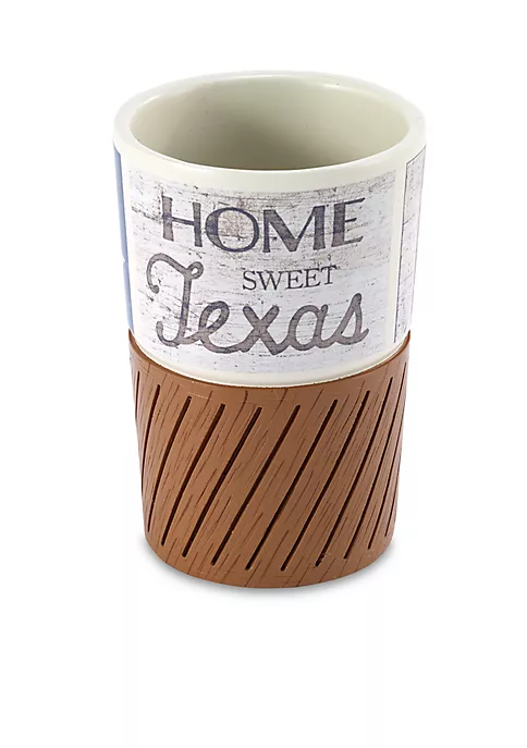 Showcase your love for your home state of Texas in your bathroom when you add this Home Sweet Texas Tumbler into the mix. The quality resin material and woodgrain look on the bottom will make this must-have your new favorite decor addition.
