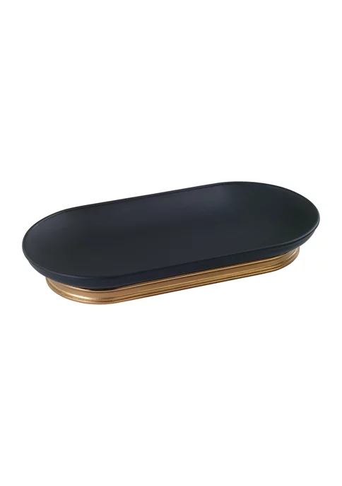 The Avanti Memphis Tray delivers a smooth matte black finish with beveled industrial accents in vintage gold metallic. Crafted in durable resin for long life, 5″ x 10″ x 1.4″. Full coordinating bath accessory collection is available.