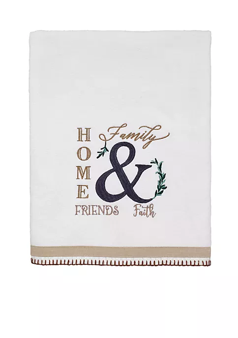 The Avanti Modern Farmhouse Bath Towel is crafted in 100% cotton with embroidered icons and words that will provide traditional, family vibes.