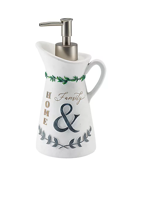 The Avanti Modern Farmhouse Lotion Pump replicates a classic milk pitcher and is adorned with icons, words and phrases to bring one of today’s most popular decorating motifs to your home.