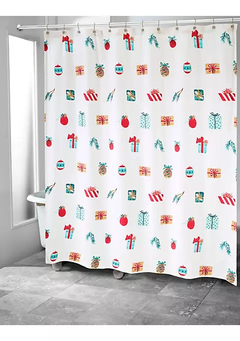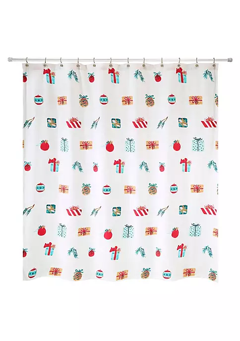 The Avanti Multi Icon Holiday Shower Curtain features a festive group of colorful holiday icons including brightly wrapped presents, ornaments and pine branches. Printed on a 52% polyester, 48% cotton heavyweight, off-white canvas-like cloth. 72″ x 72″. easy care.