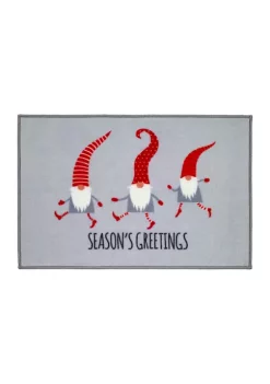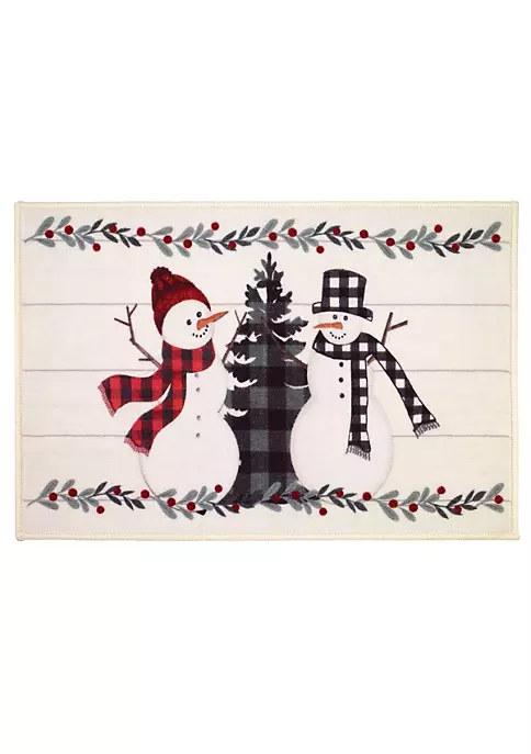The Avanti Rustic Pals Decorative Bath Rug features two snowmen in colorful scarves and hats with green and black checked pine tree in the middle. An ivory shiplap ground with holly leaves and berries top and bottom finish the look. Printed on 100% polyester, 20″ x 30″, non-skid latex back.