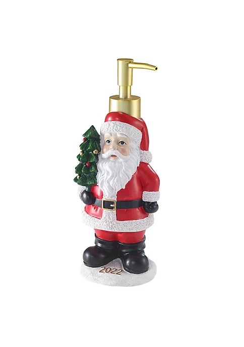 The Avanti Santa with Tree Lotion/ Soap/ Sanitizer Dispenser features a fully-outfitted jolly Santa holding a small Christmas Tree with ornaments. Made of durable, hand-painted resin. Makes a great addition to any bathroom, kitchen or office.