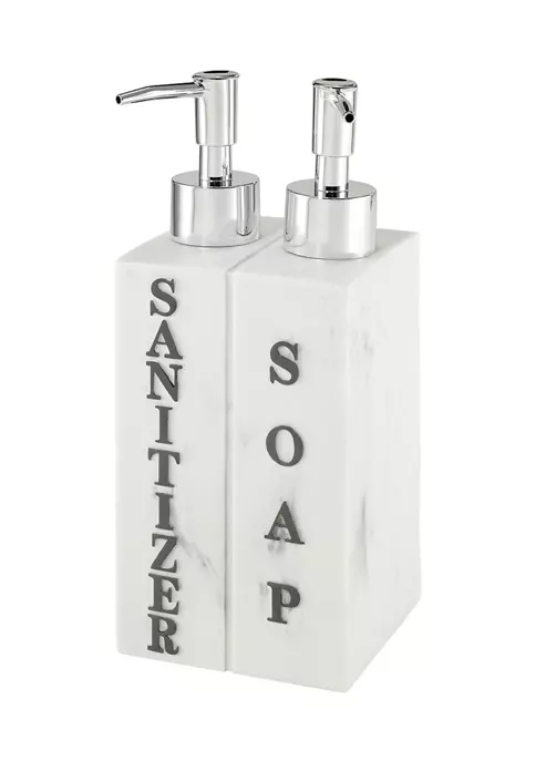 The Avanti Square Lotion and Sanitizer Dispenser is the perfect personal care solution for any bathroom, kitchen or workspace. It has a space-saving, sleek design and clearly labelled dual chambers for your favorite lotion and sanitizer. Made out of durable resin for long-lasting use. Imported.
