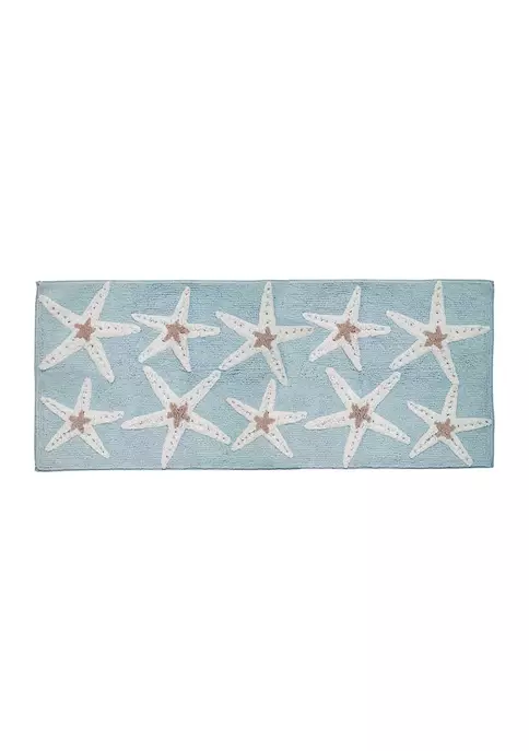 Bring a bit of the shore indoor and go totally beach chic in your bathroom or kitchen with the Sequin Shells from Avanti. The oversized rug features starfish on an aqua ground tufted in 100% cotton. The rug is skid resistant and machine washable.