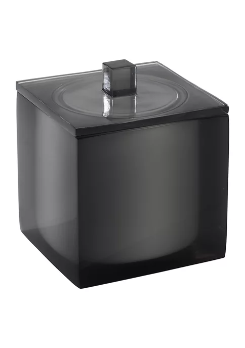 The Avanti Soho Covered Jar features a smoke-colored, clear resin exterior with a painted white interior to combine for a sleek, modern look. The cover is made of the same smoke-colored, clear resin with a square knob.