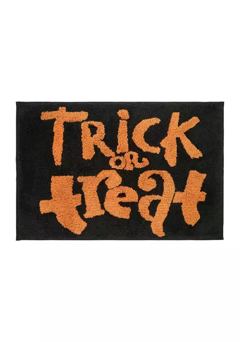 The Avanti Trick-or-Treat Decorative Bath Rug features an orange “Trick or Treat” in multiple fonts on a black ground. Adds a perfect touch of the Halloween cheer to any bathroom, kitchen, mudroom or hallway. 100% tufted cotton with latex non-skid back.